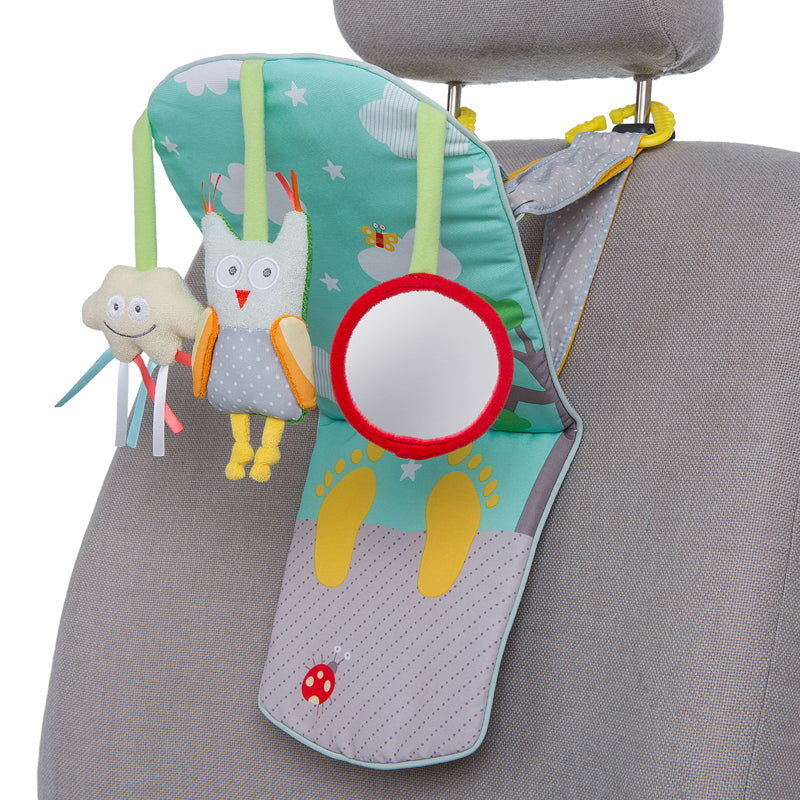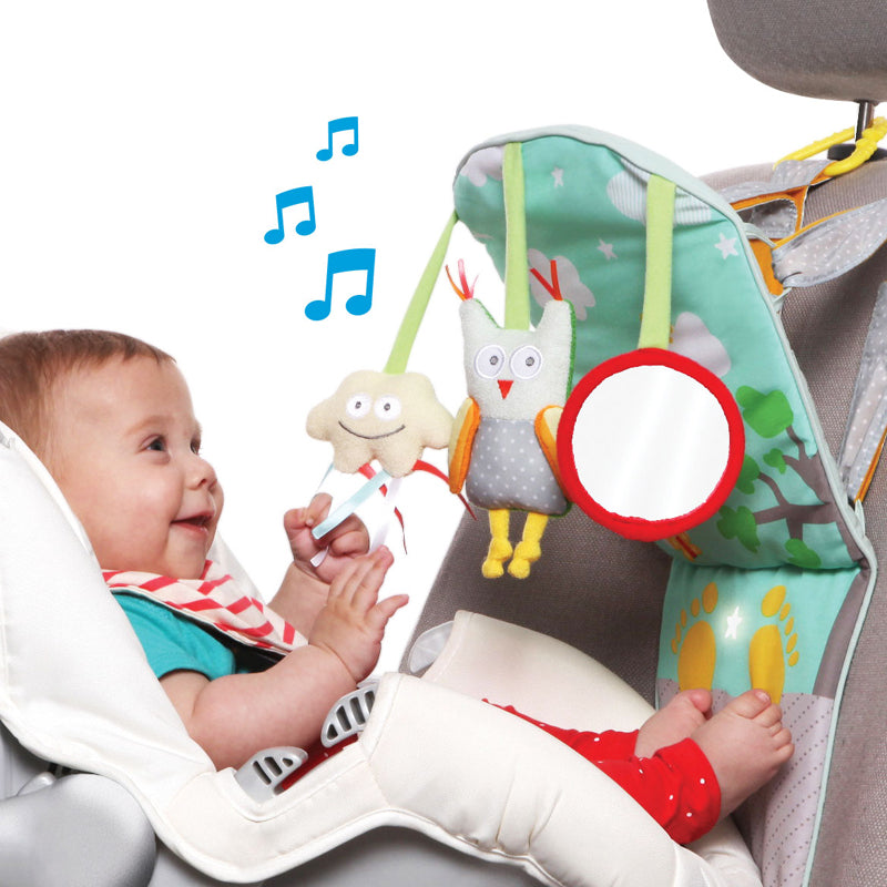 Keep baby amused when travelling with the Taf Toys Play & Kick Car Toy! This richly coloured play centre is especially designed provide entertainment for baby when travelling in a rear-facing car seat.