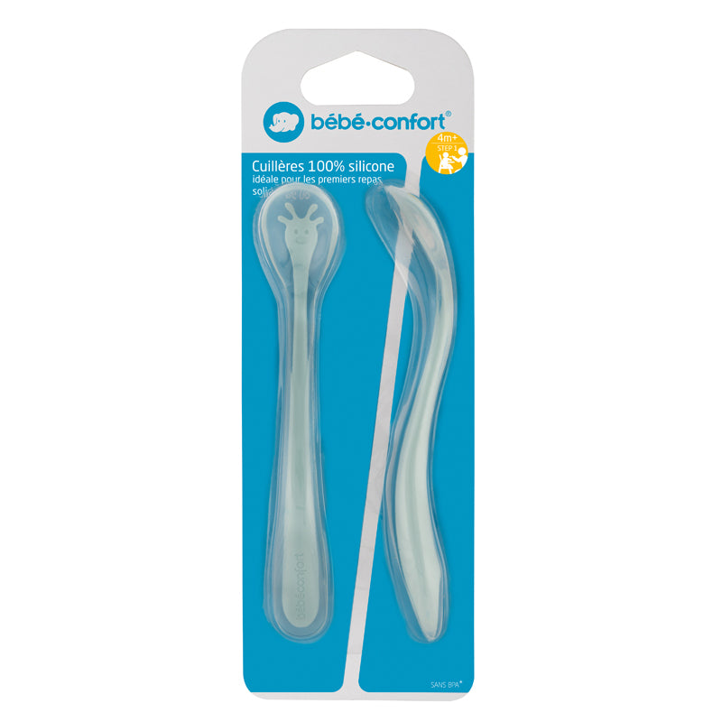 This two pack of soft silicone training spoons are gentle and safe on babies gums.