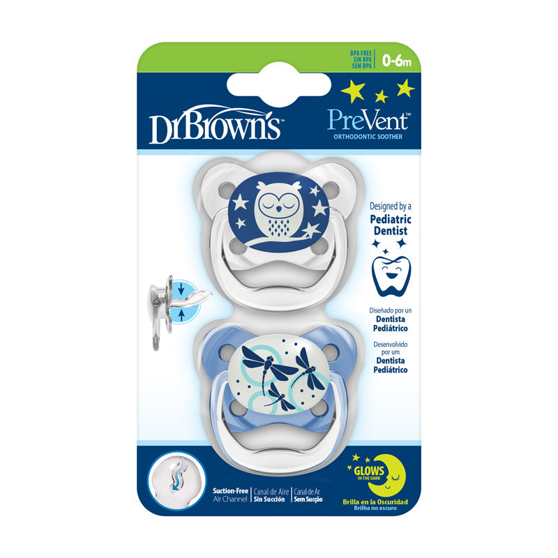 Dr. Brown’s® PreVent™ Soothers are as adorable as they are effective. Designed by a paediatric dentist, the 100% silicone bulb