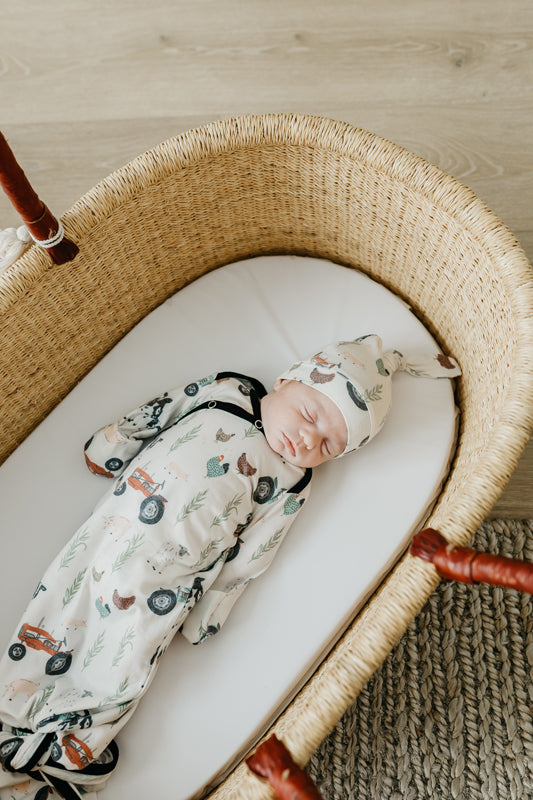 Scrumptiously soft and stretchy, our knotted gowns are made in our premium knit fabric for a cosy and comfortable fit. With added fold over mitts that protect from scratching, it also features front fastener openings and knot tie bottom for easy changes.