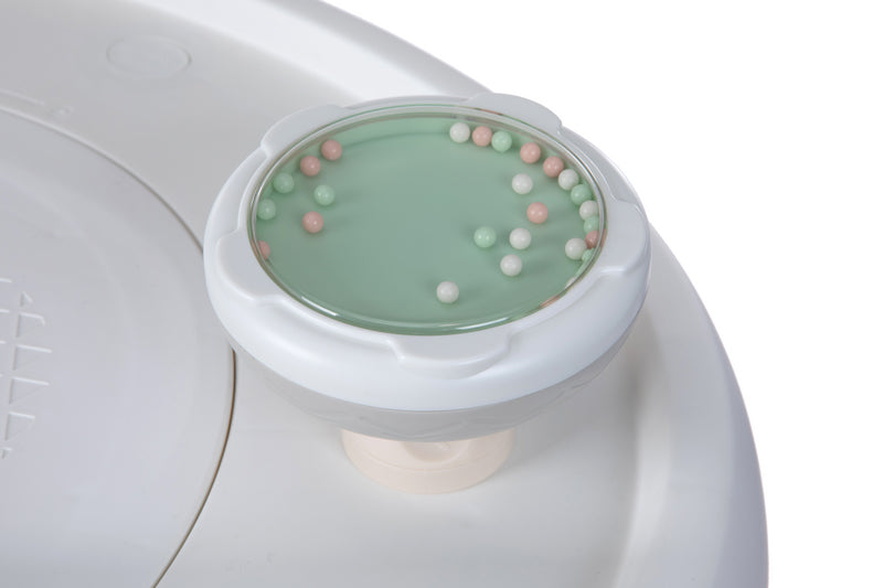- 6+ months: Once baby is sitting comfortably, place them in the rotating seat and let them enjoy the various toys and activities, spinning the beads, playing the wind chime or hitting the bead drum. This diverse sensory feedback offers your little one visual, audio and tactile stimulation.