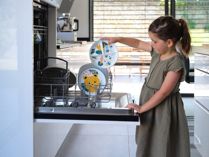 The Bébéconfort learning plate with compartments is suitable from 12 months.