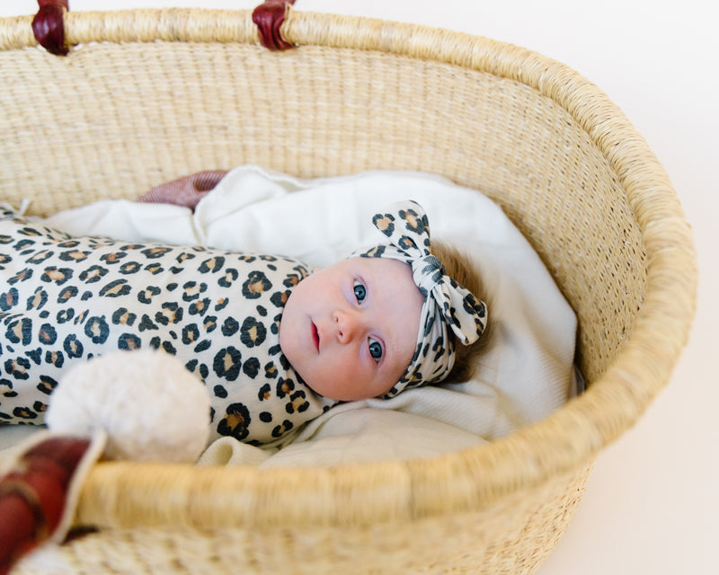 This adorable bow headband is made in ultrasoft, breathable fabric, with enough stretch to comfortably grow with baby through the first few months.