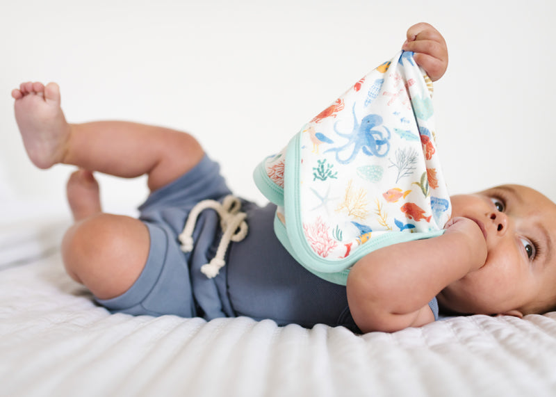 Perfectly sized at 40.6 x 40.6 centimetres for ultimate self-soothing and portability. It features 2 exclusive prints; one on each side of the comforter.