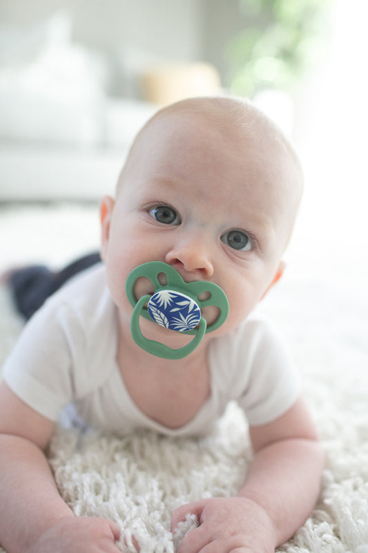 Features a fully symmetrical, reversible bulb that fits perfectly in your baby’s mouth, no matter which way it’s placed. The 100% silicone bulb is soft yet durable, with a rounded shape that naturally soothes your baby’s suckling reflex. Its unique shield design allows optimal airflow, helping to prevent irritation on sensitive skin. The blue glow-in-the-dark design ensures it’s easy to find, whether during daytime play or night-time soothing.