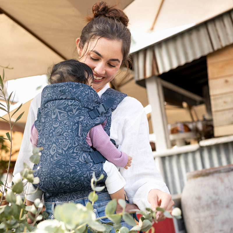 With its all-new stylish floral print, the Infantino Flip 4-in-1 Convertible Carrier just got better! This is the carrier for you if you want to carry your baby in style. It also features four convertible carrying positions that can be used at appropriate developmental milestones from newborn to toddler (8-32 pounds/ 3.6-14.5 kg). So whether you’re walking in the park with your facing-in newborn or exploring a museum with your toddler in back carry position, hands-free convenience and close bonding moments are always within reach. Plus, the carrier is customizable to ensure a comfortable fit for both baby and parent. An adjustable supportive waistband, head support, ergonomic seat, and padded shoulder straps embrace many different body types and lifestyles, making this carrier an excellent option. It's no wonder why the Infantino Flip 4-in-1 Convertible Carrier is America's best-selling carrier - it's practical, affordable, parent-approved, and available in various chic prints! Spice up your baby-wearing style with the Infantino Flip 4-in-1 Convertible Carrier!